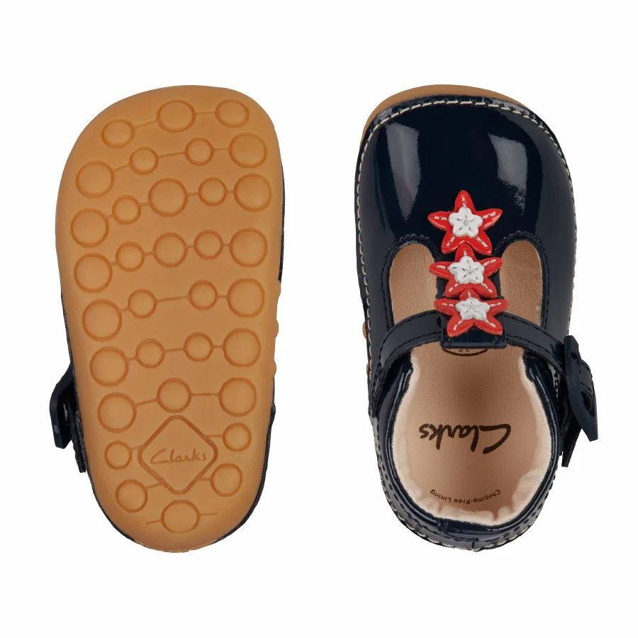 Clarks Tiny Flower T Shoes-Navy Pat F