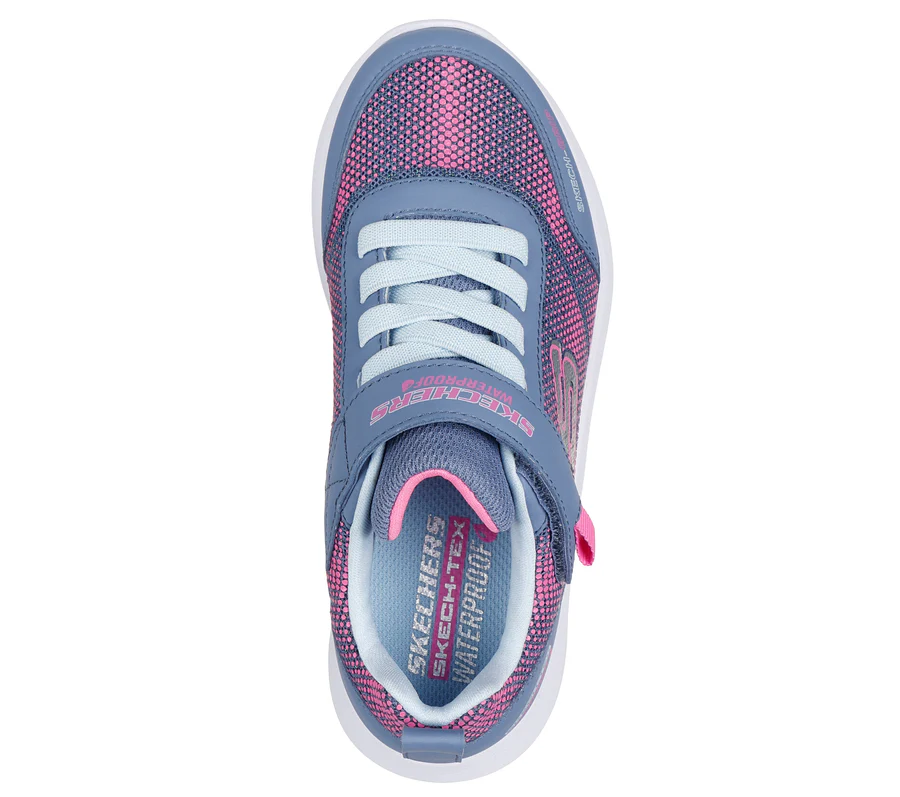 Colorful style and sporty comfort is ready rain or shine with Skechers Dynamic Tread – Journey Time. This waterproof active design features an iridescent mesh and synthetic upper with stretch laces, adjustable instep strap, and flexible rubber traction outsole.