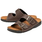 Perfect for casual summer days is the Lotus George mule sandal. Constructed with a padded leather footbed and secured with two buckle fastenings that have a burnished finish, this men?s slip-on brown sandal is a practical and stylish choice for laidback looks at a weekend or on holiday. Uppers: Textile. Insole: Leather. Sole: Manmade.