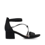These stylish strappy sandals from Rieker come with gorgeous silver embellishments across the foot. The adjustable velcro strap ensures a secure fit while the cushioned anti-stress sole and block heel provides comfort and support. Perfect for events and nights out. Uppers: Textile. Lining: Textile. Sole: Manmade. Closure: Velcro Strap. Heel Approx: 2″