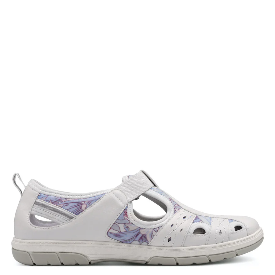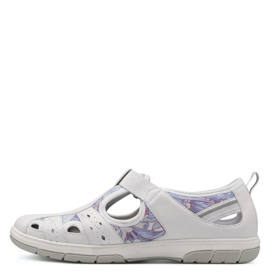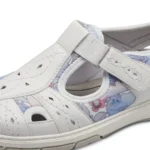 Experience luxury with the Jana wide ‘H’ fit 23669-44 Ladies Shoe in white, featuring delicate lilac accents and intricate perforated design. Elevate your style with this sophisticated and exclusive shoe.